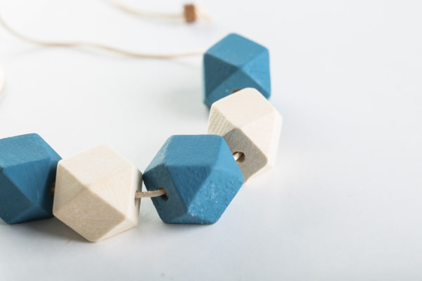 Κολιέ με αυξομείωση μακραμέ. Γεωμετρικές ξύλινες πέτρες συνθέτουν ένα κόσμημα για εσάς που αγαπάτε τα σχήματα.